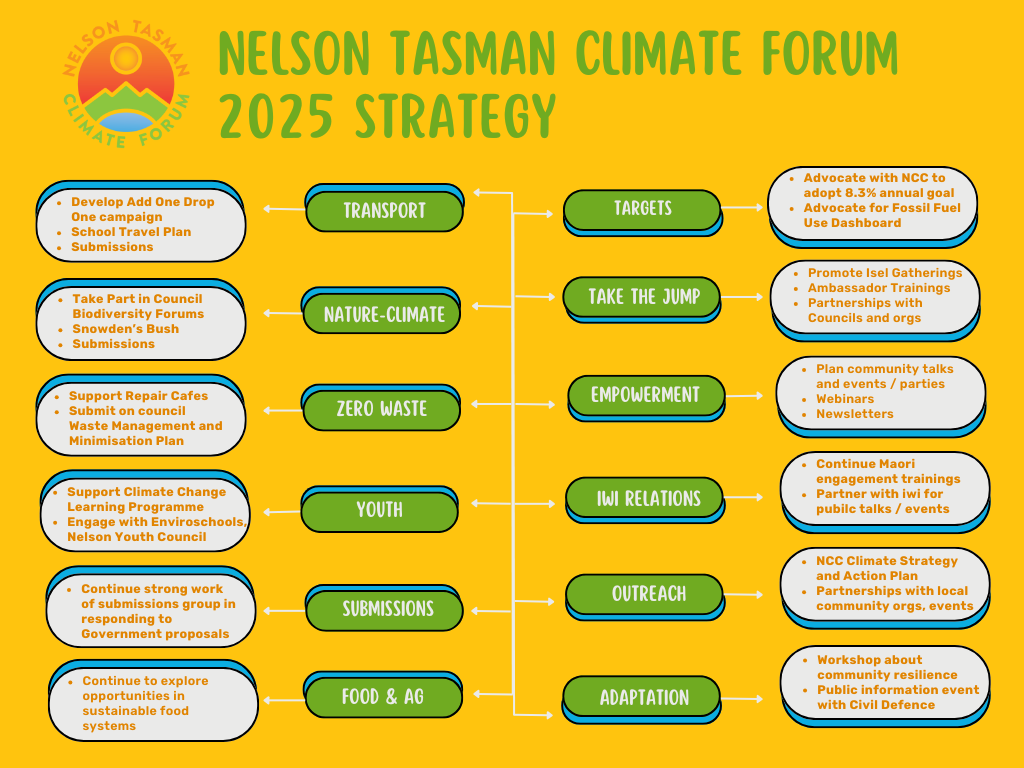 Our mission is to weave individuals, households, civil society organizations, businesses, councils and iwi together around urgent, strategic action on climate change in the Nelson-Tasman region.