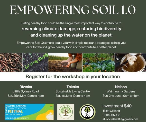 Registrations details HERE. This workshop is also organised on the 1st of June in Takaka and on the 2nd in Nelson. See the full program for registrations details for those workshops.