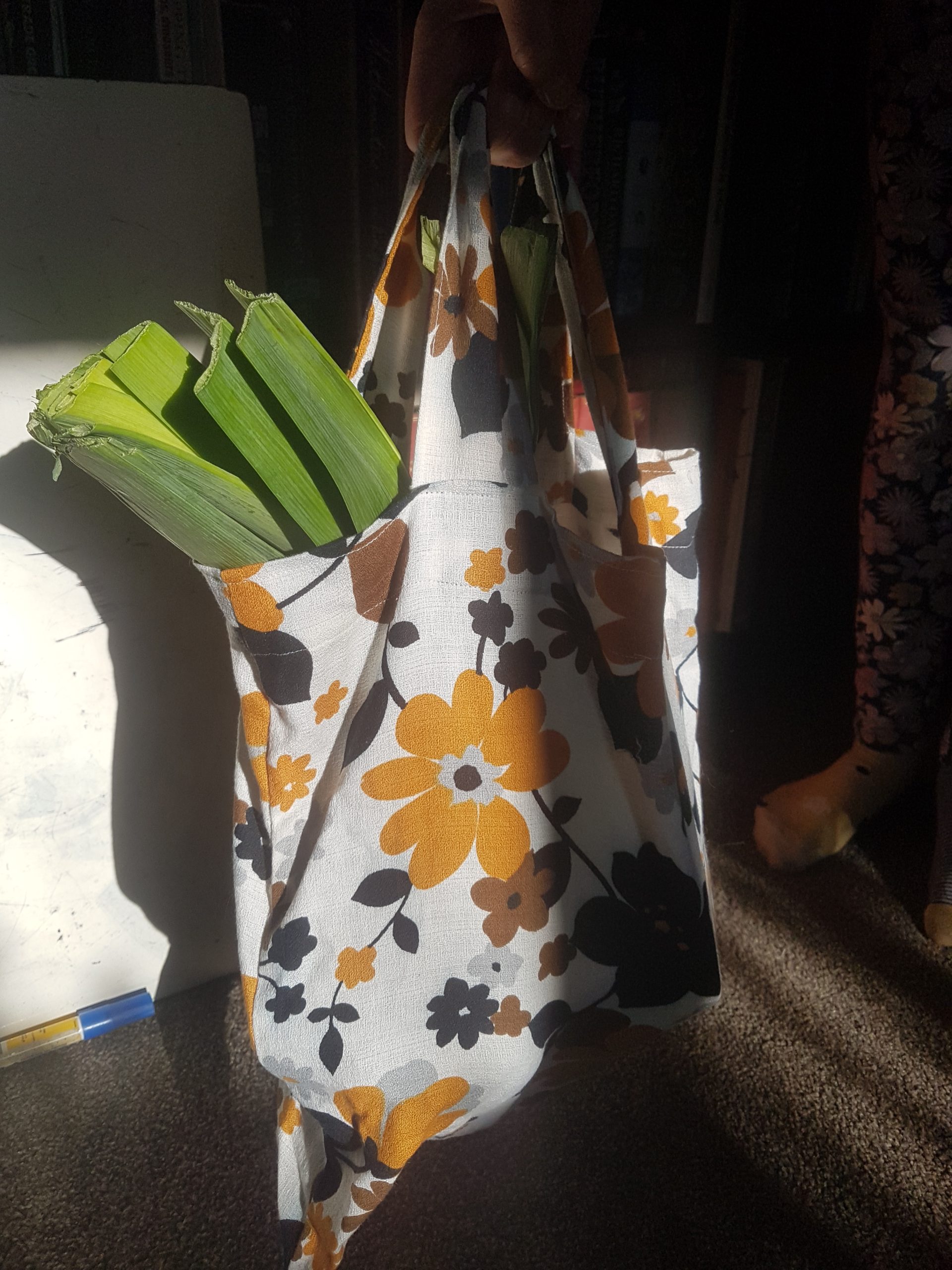 Come and turn rags into bags. Bring old t-shirts, pillow cases or that stash of fabric you don’t know what to do with and turn them into vege bags, handbags even.