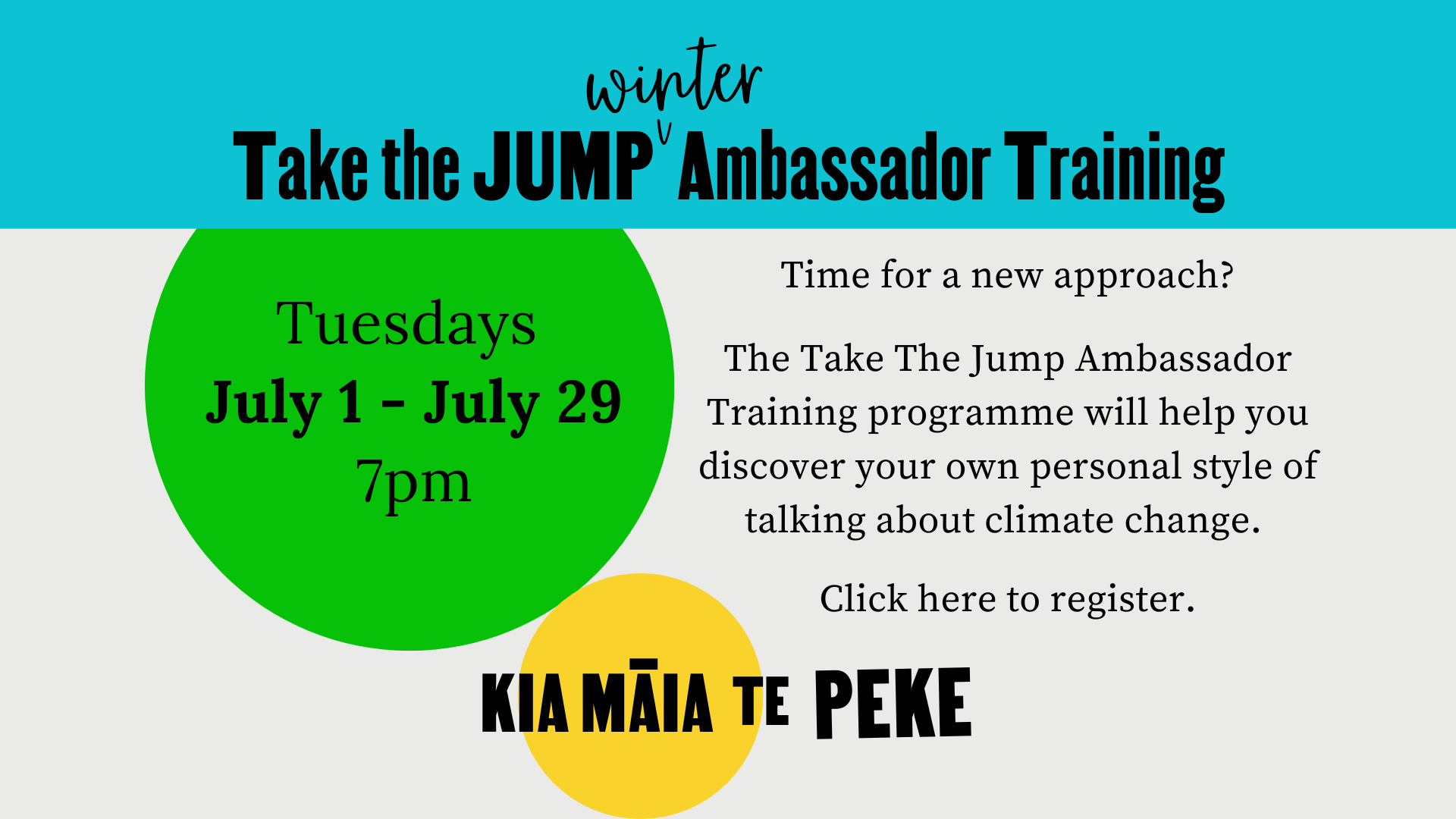 Are you concerned about climate change, but not sure how you can help to make a difference? Do you want to play a positive, active role in climate change solutions? Get to know more about the how the global Take the Jump movement is developing in Aotearoa and help to spread the word across the…